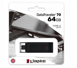 Przenośna pamięć Kingston DT70 posiada pojemność 64 GB. Model został wyposażony w interfejs 3.2 w celu szybkiego przesyłania plików. Pamięć zapewnia wsteczną zgodność z istniejącymi portami USB 2.0. Praktyczna konstrukcja sprawia, ze jest to idealne urządzenie do codziennego użytku. Duże, kolorowe oczko umożliwia przymocowanie pamięci do kluczy lub breloka. Praktyczna zatyczka zabezpiecza złącze USB, chroniąc w ten sposób dane.