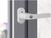 Klamka wykonana z tworzywa sztucznego i metalu, w kolorze białym, o wymiarach 13 x 2 cm, waży 250 g. W zestawie znajdują się wszystkie niezbędne elementy do montażu.